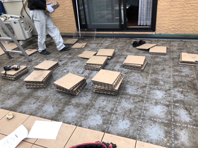 バルコニーの床はタイルで仕上げておりますので、まずはサンルームが設置される箇所のタイルを解体していきます。