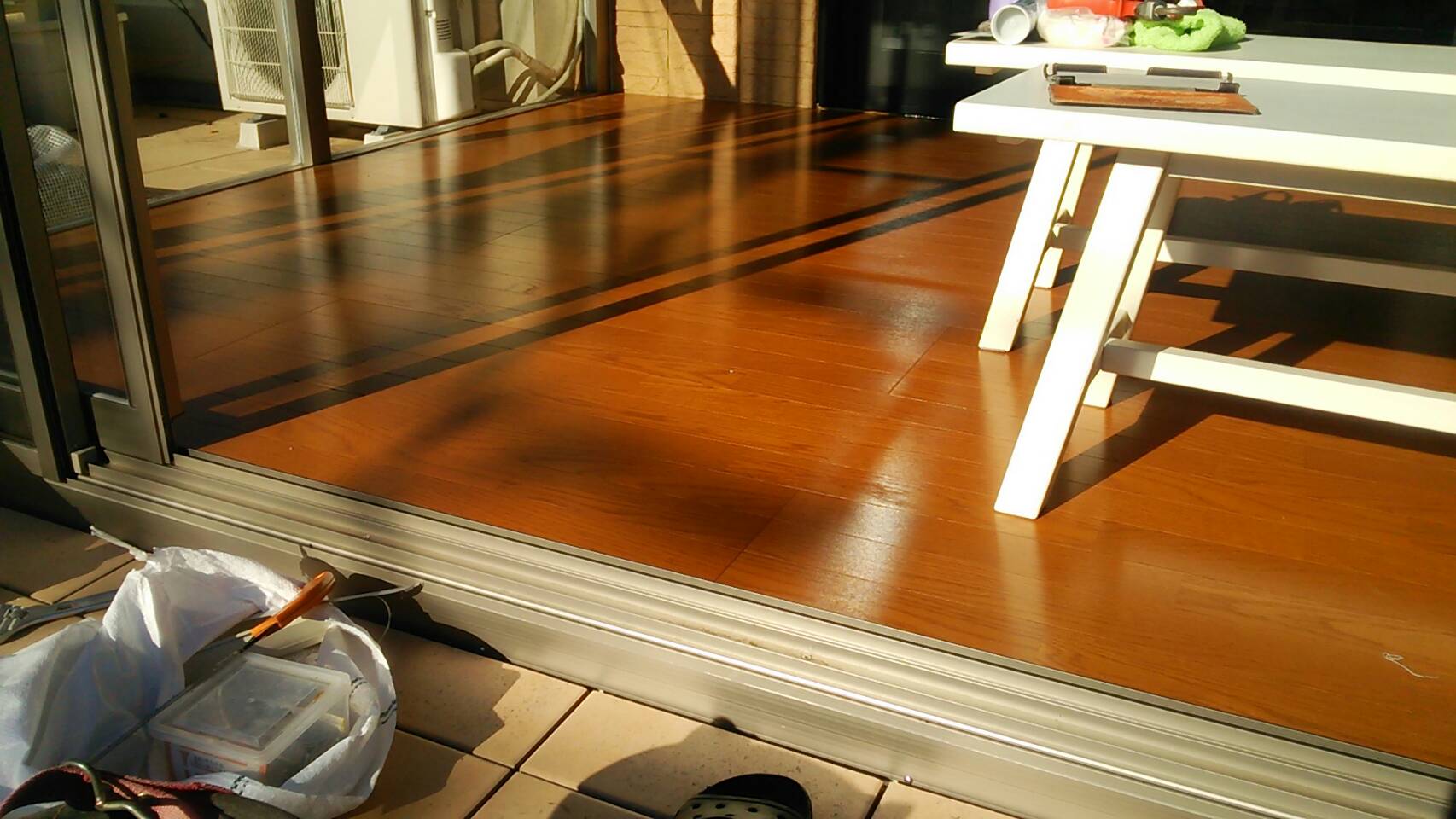 後日、サンルームの骨格を組み立てていくのですが、既製品を切り詰したりと2日ほどの日程を頂きました。