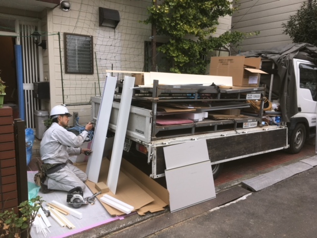 作業3日目、4日目をむかえました。土間打ち、給排水切り廻しと、作業は順調に進んでいきました。そしてユニットバスの組み立て!