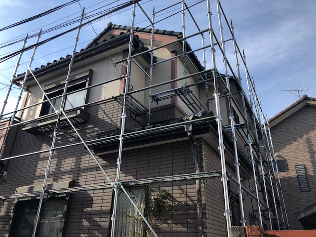 本日、さいたま市内で外壁塗装のお客様宅で足場の組み立てだったので顔を出させて頂きました。明日から養生、高圧洗浄、塗装へと進んでいきます。