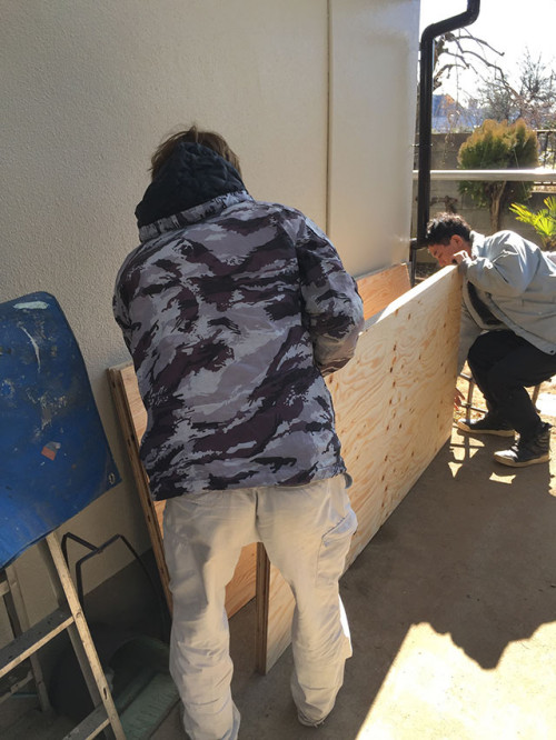 しかし、合板もかなり重く、合板を上げるより先に私の息の方が先に上がってしまいました。。