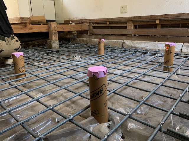床解体から始まり、掘削工事を得て3日目は、鉄筋組みです。
