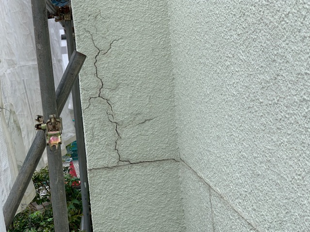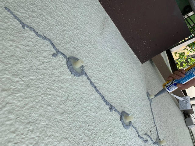 埼玉県さいたま市K様邸の外壁塗装工事に伴い、塗装する前にクラック(ひび割れ)の補修をしていきます。このクラック箇所から雨水が入るとよくありません。