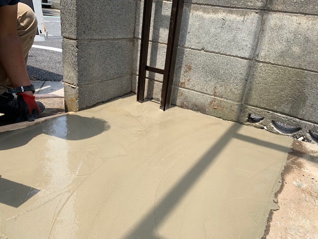従来の設置位置と柱の位置などがズレることもあり、植え込み部分をコンクリートにして、ゲートをできる限り道路寄りに設置します。