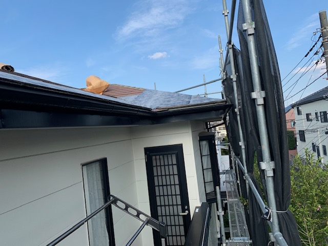 この度、ご縁があって、屋根のカバー工法工事のご依頼を頂きました。 工事の初日の本日は、ルーフィングを敷設していきます。