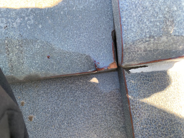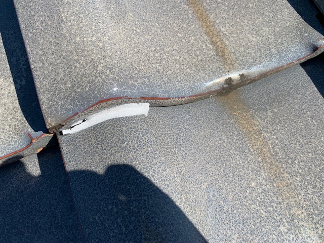 このような状態を、お客様にお伝えし、大屋根、下屋根共に、キッチリとしたシリコン止めをやったほうがよいことをお伝えし、この度、工事の受注を頂きました。