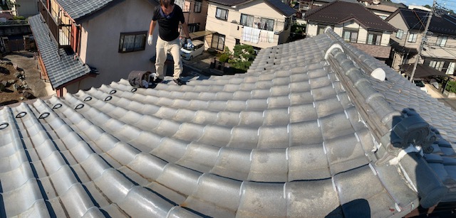 施工は2日ほどで終えます。 お客様も、台風時に、瓦が飛んでしまわないか?とご心配されておりましたが、コレでご安心頂けます。