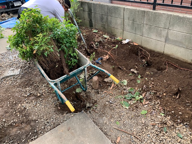 先ずは、砂利を回収していき、根伐りをおこないます。
