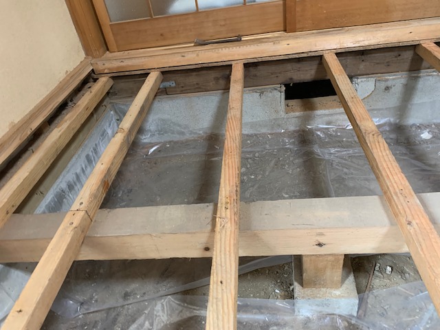 湿気が強いことから、床下に調湿剤を散布することになりました。 また、畳からフローリングへの変更も、ご希望されており、本日、工事で伺いました。