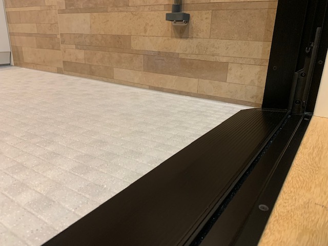 入り口ドアは、片引き戸です。ブラックのドア枠が格好いいです。