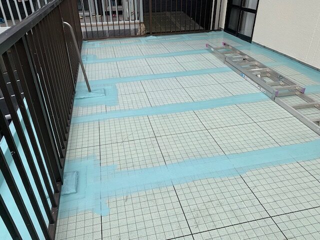 屋上、ベランダのウレタン防水工事の、いよいよ最終工程となる、防水工事が始まりました。 この度の工事方法は、国土交通省の公共建築工事標準仕様書にも定められている、X-1工法(通気緩衝工法もしくは絶縁工法)、X-2工法で、工事を進めてまいります。