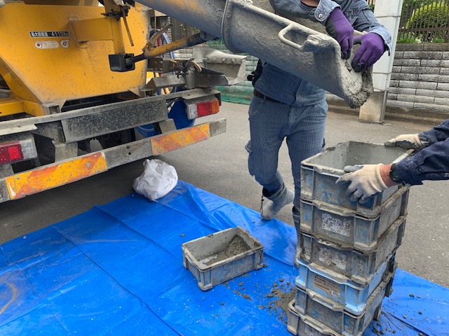 ミキサーの滞在時間は約1時間程度です。 その間に 所定の数量を出し切らないと延長料金がかかるので 素早く作業を進めていきます。