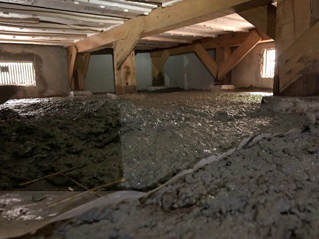 床下の湿気が強く コンクリート化のご提案をさせて頂き 2日に渡り工事に入りました。 調査には 私自身が床下に潜ったのですが かなり湿気が強く 作業服には湿った土がべったりと付着しました。
