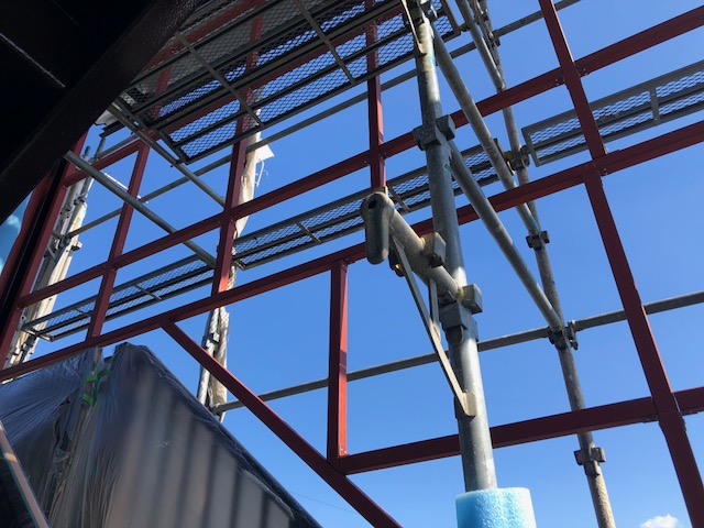 下地となる鉄骨骨組みの取り付けが完了しました。