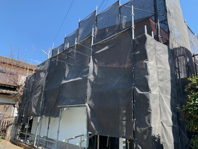 カバー工法の工事、2日目です。 本日はルーフィングを既存の屋根に貼っていきます。