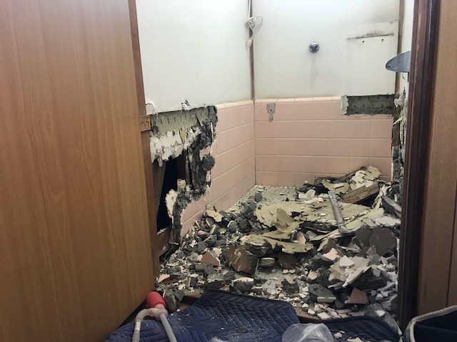 次にタイルの解体に進みます。かなり壁も床も厚くモルタルが打たれておりました。