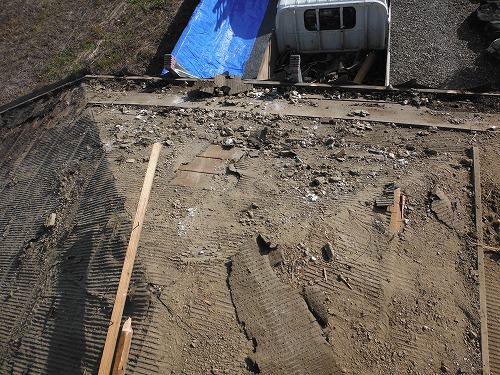 既存の傷みきった防水シートを剥がし、