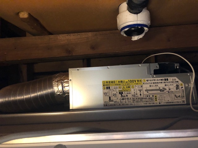 組立前に新たに交換した換気ダクトと100vの感想暖房機が接続されております。