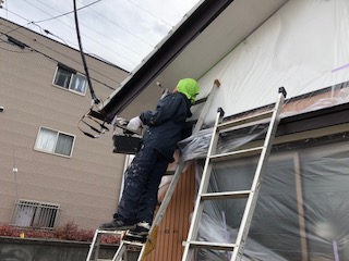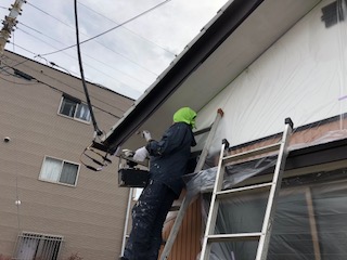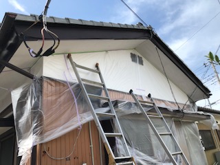 作業2日目は軒天改修工事です。軒天の穴、痛み、破れは、放っておくと雨漏れや、破風・屋根自体の歪みや破損につながります。