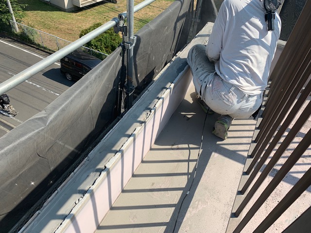 ビルの防水工事は着々と工程が進んでおります。