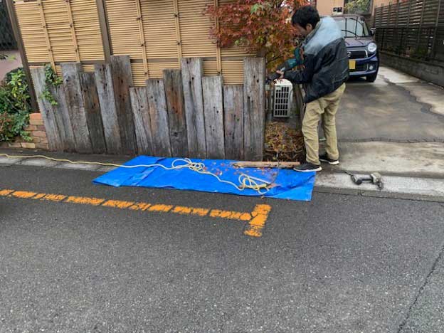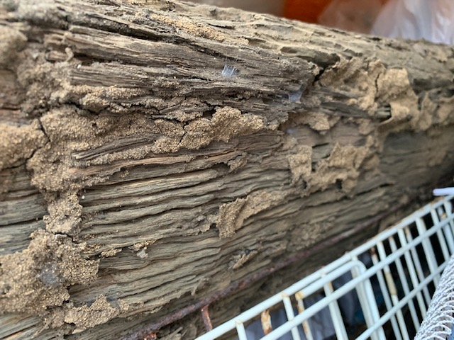 実際にこちらの、お客様宅の枕木も喰われた跡があったので、枕木の撤去をお勧めしました。