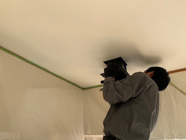 工事は、新たに天井に換気口の穴を作り、ダクトを新しいものと交換しました。