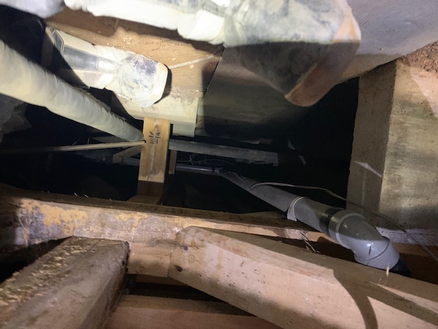 配管類が並んでおり、思うように床下での搬入作業がはかどりませんでした。
