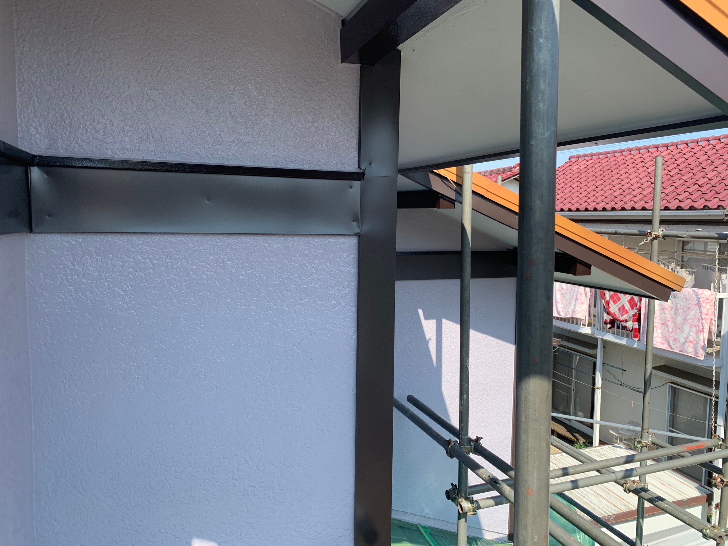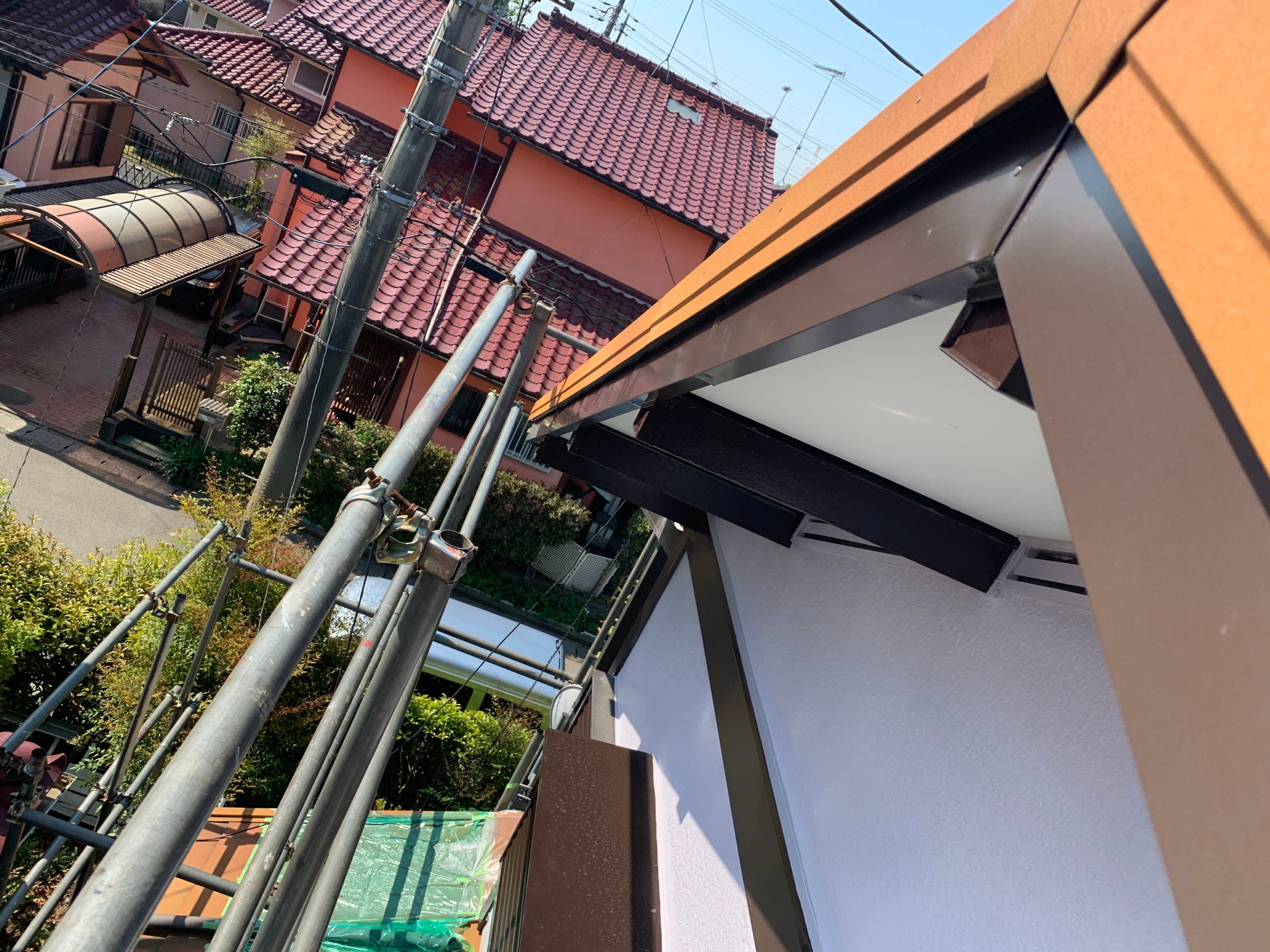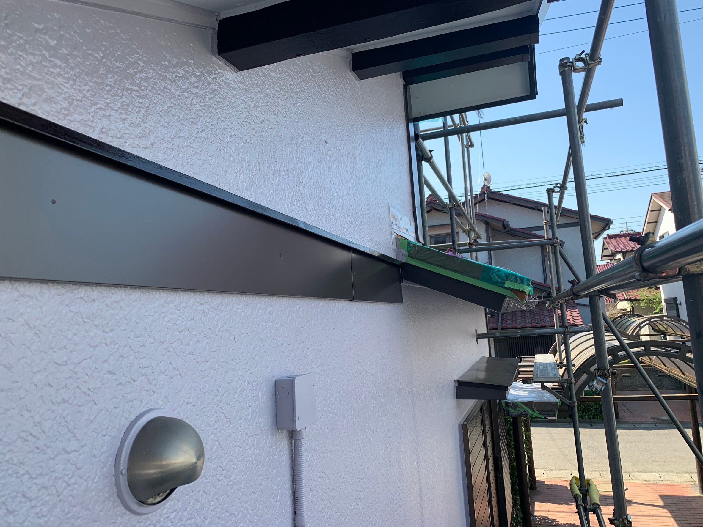 こちらのお宅は、破風板や帯、柱といったところの痛みが激しく、塗装では追いつかない状態だったことから、板金を巻くことにしました。