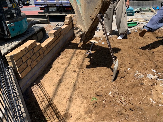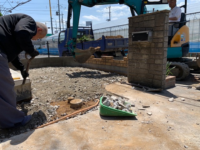 その後に、ユンボを使って掘削し、砕石を入れていきます。