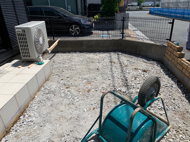 お庭を、コンクリートにしたいとのご要望を受け、工事にはいらせて頂きました。
