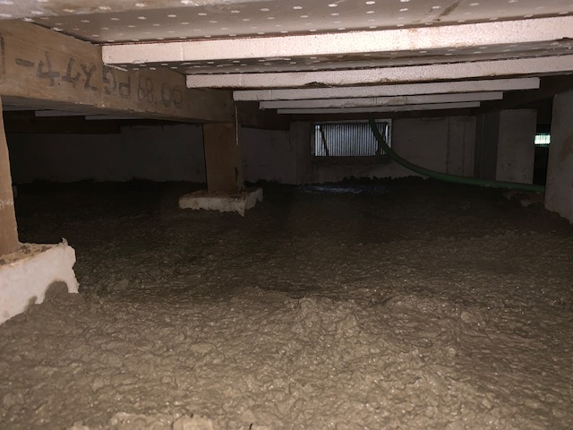お宅が広いこともあり、今回は3箇所から床下への入り口を設けさせてもらい、作業となり、防水シートは、既に敷設されていたので、メッシュ筋、コンクリート打設の2工程でした。