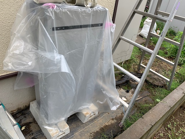 小雨がパラつくなか、蓄電池の設置工事にはいりました。