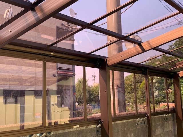 カーポートのサイドには、吹き込み型の雨が入り込まないように、高さ80cm程度のパネルを、オプションで設置しました。