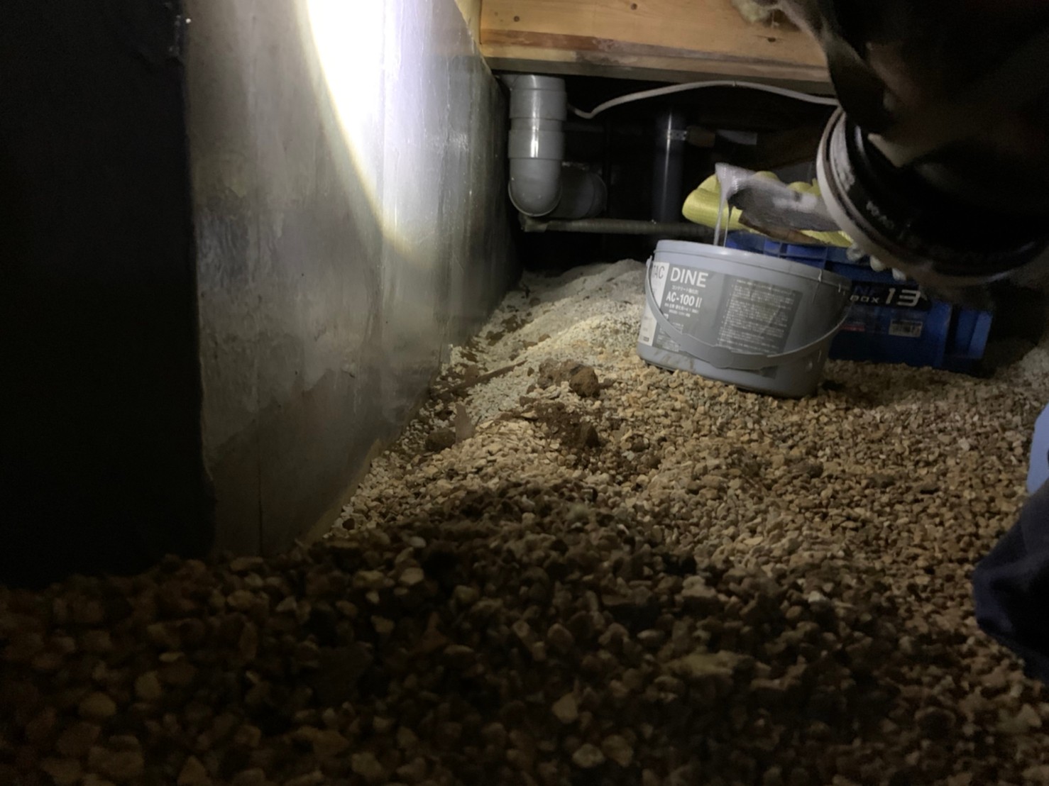 先ずは、基礎の下部を掘って、プライマーを塗布していきます。プライマー塗布後に、補強剤を塗布していきます。