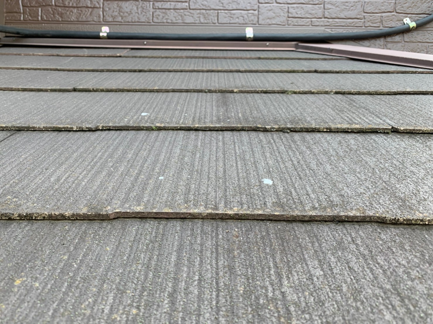 屋根は防水が切れており、苔が生え、既存の色がわからなくなっています。 {CAPTION}