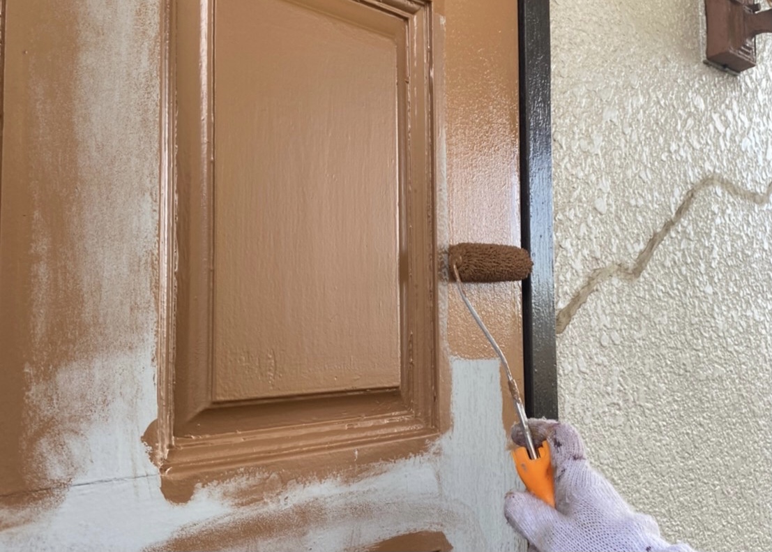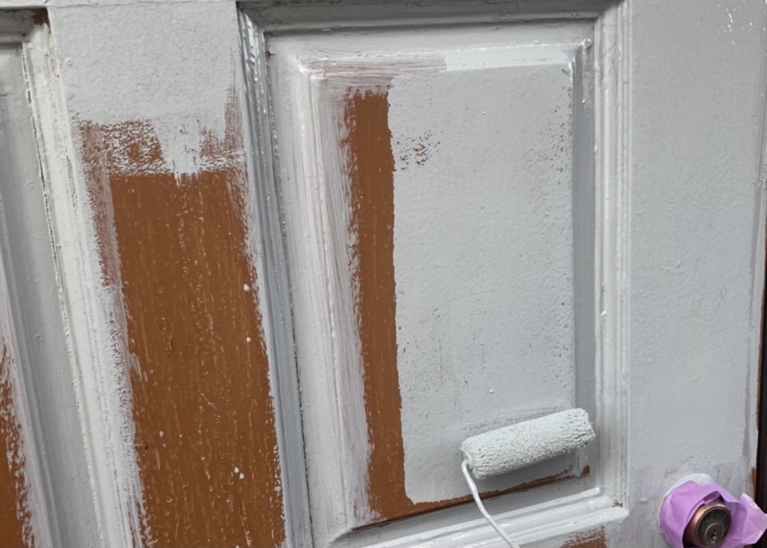 玄関ドアも塗って欲しいということで、ご覧のように塗装していきました。