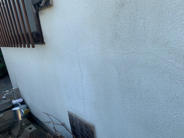 塗装する前の外壁の状態です。 大きく、ひび割れなどがありました。