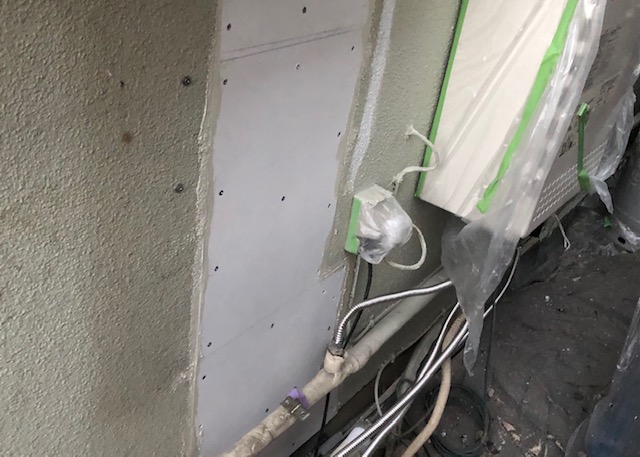 ボイラーが設置されていた箇所は、大きく壁を壊して、新たに下地を作り直し、塗装で仕上げていきました。