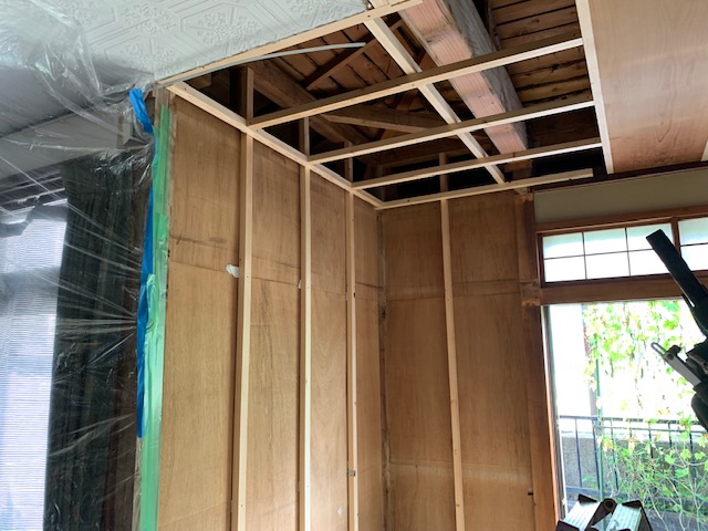 押し入れの解体を済まし、柱を1本抜き、開けた空間を造っていきます。