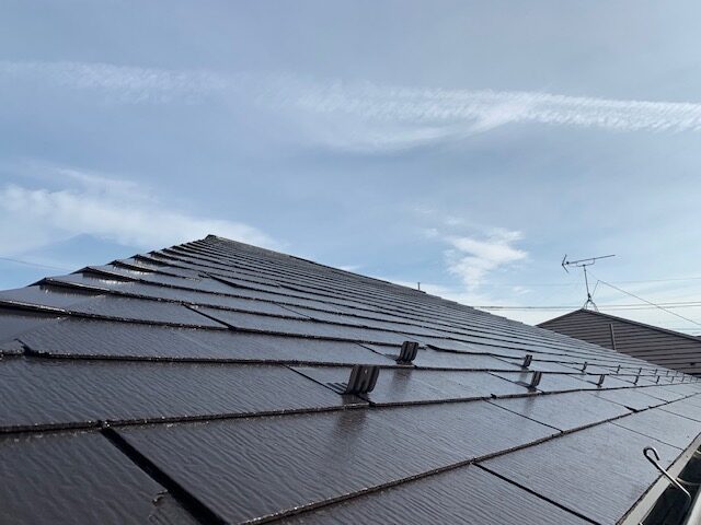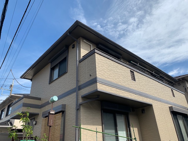 長雨で暫く作業がとまってしまっておりました上尾市の屋根外壁のお宅の工事も、完了となりました。