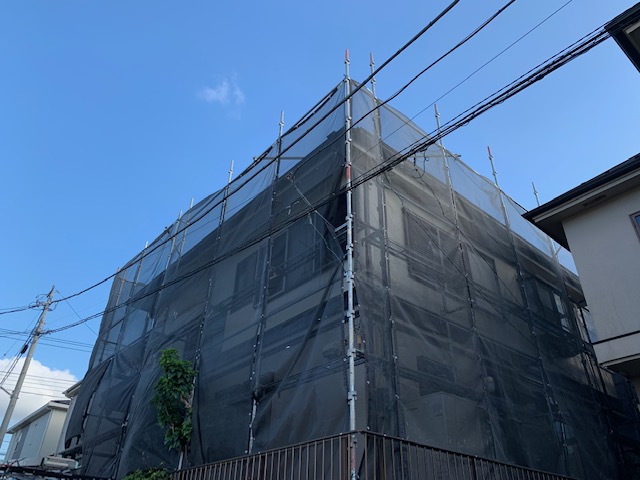 あとは、足場の解体を残すのみとなりました。 大変長らく、足場があったために、施主様には、なにかとご不便をおかけしました。