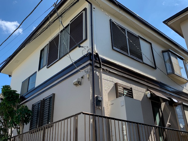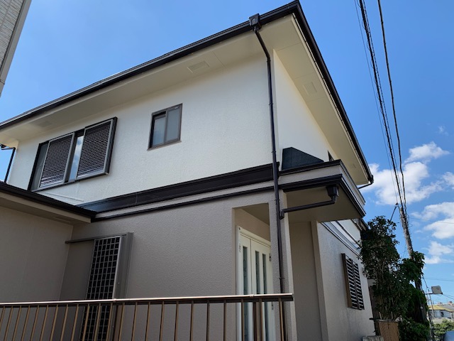 松戸市の塗装工事も終わり、本日、足場も外れ、塗装を終えた建物がお披露目となりました。 建物全体が締まった感じがします。 長雨で、一ヶ月近く、足場が架った状態が続いてしまい、お施主様には、ご迷惑をおかけしました。