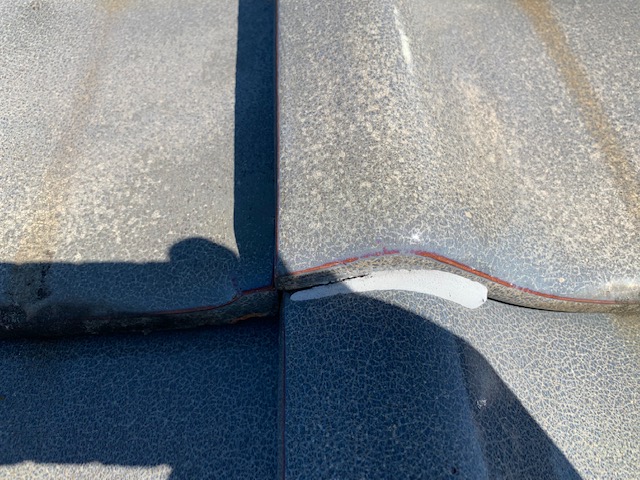 このような状態を、お客様にお伝えし、大屋根、下屋根共に、キッチリとしたシリコン止めをやったほうがよいことをお伝えし、この度、工事の受注を頂きました。