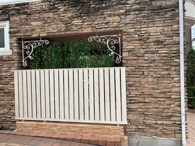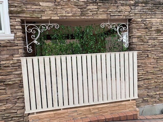 フェンス上が大きく空間になってしまうので、もの寂しかったので、フェイクの観葉植物ツルを上から垂らしてみました。