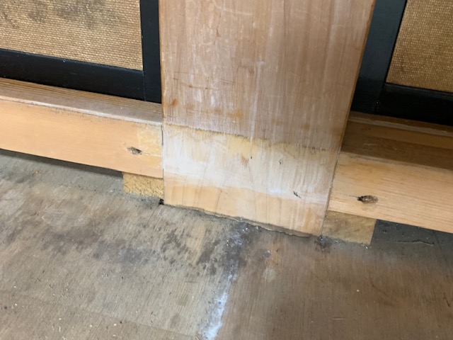 再び、和室のほうへ目を向けると、レベルが計年によってマチマチになっていることから、スペーサーを入れてレベルを合わせていきます。