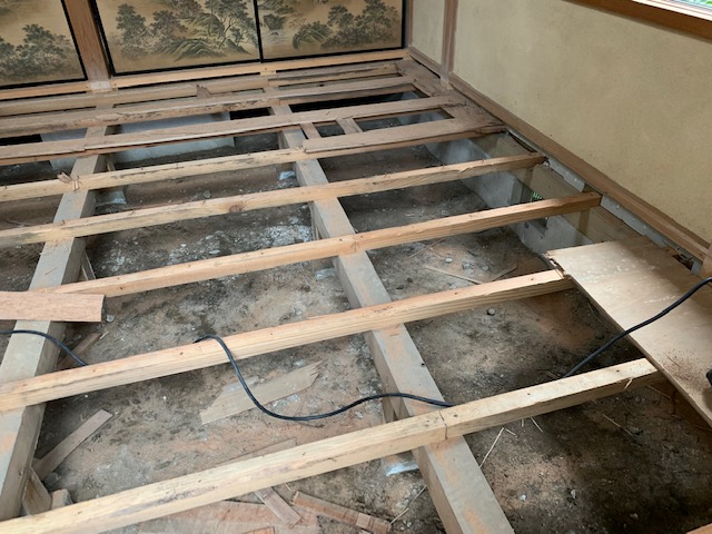 湿気が強いことから、床下に調湿剤を散布することになりました。 また、畳からフローリングへの変更も、ご希望されており、本日、工事で伺いました。