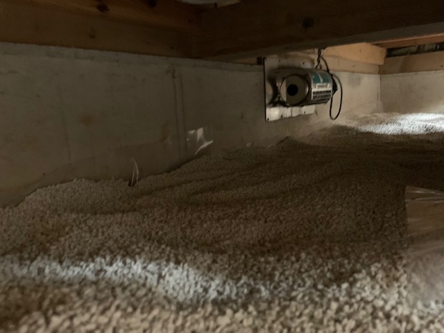散布完了です。基礎が入り組んでおり、調湿剤を床下に運び入れるのには、一苦労です。
