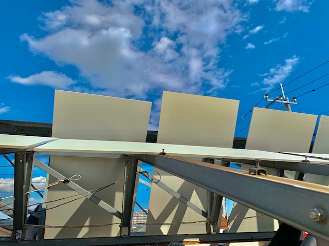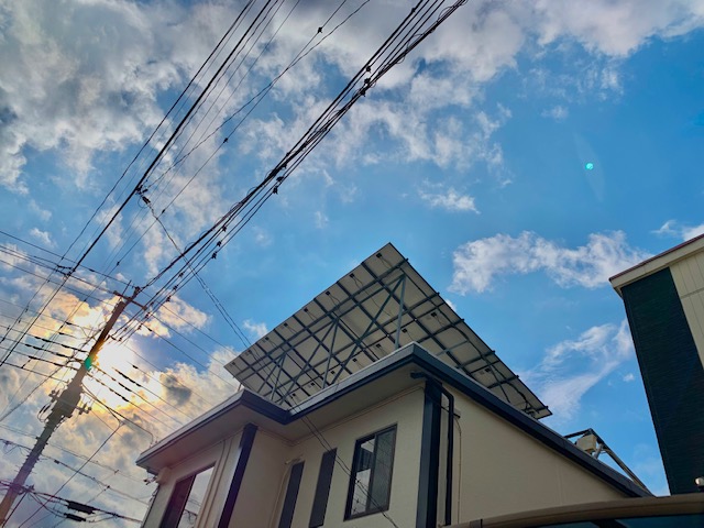 ケイカル板を上げ終えた頃には、すっかり晴れ空になりました。