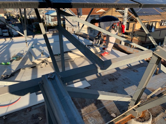 太陽光の架台周りにも、キッチリと下地を入れていきます。