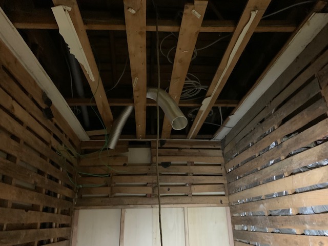 天井には暖房乾燥機が取り付くので、ダクトを通しておきます。